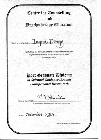 Ich habe diese Methode des Wachtraumprozesses bei Nigel in seinen Züricher Traumworkshops gelernt, die ich acht Jahre lang regelmäßig besuchte. Im Herbst 2013 erhielt ich von ihm ein Diplom in "Guidance durch spirituelle Traumarbeit" und arbeitete anschließend informell mit FreundInnen innerhalb und außerhalb des Inayati Ordens. Seit Herbst 2016 biete ich individuelle Traumarbeit auch offiziell an.